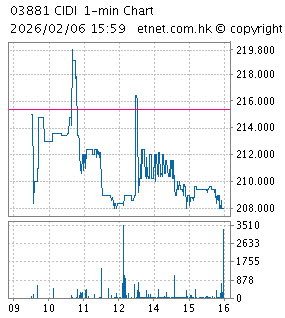 | 03881 | 希迪智駕 | 208.000 | -7.400 | -3.435% | 9,783 | |||