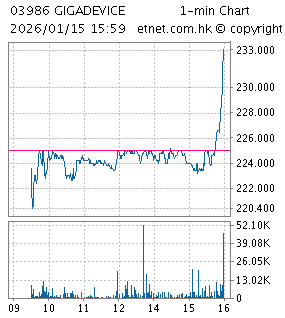 2026/01/14 13:12 《異動股》半新股兆易創新(03986)上市翌日升少於1%
