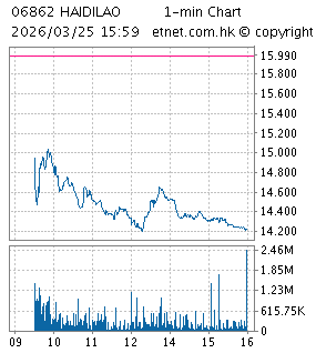《異動股》海底撈(06862)曾跌逾3%,現報15﹒38元
